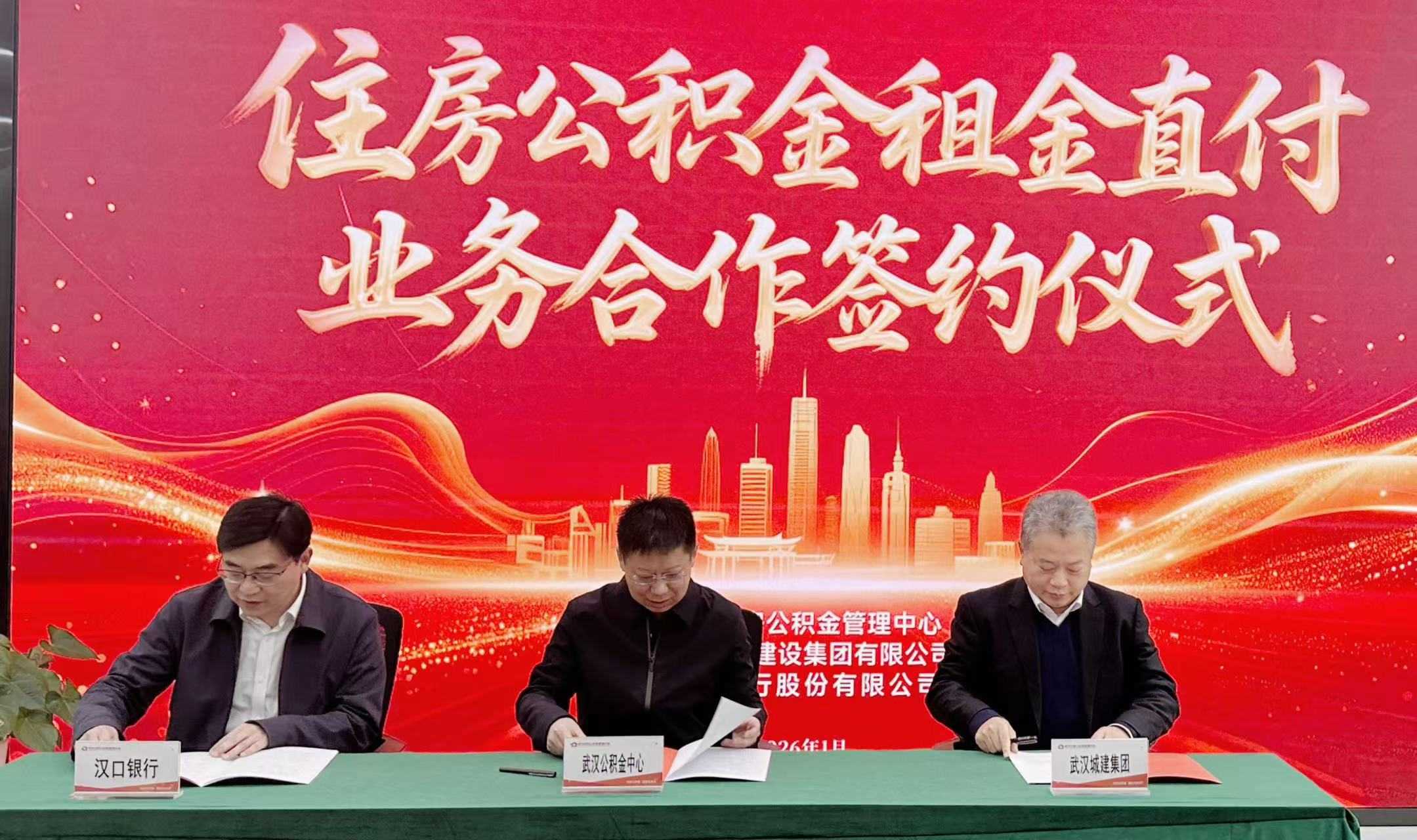 为深入落实“租购并举”住房制度,提升公积金服务民生质效,武汉住房公积金管理中心重磅推出住房公积金租金直付创新服务。2026年1月21日,武汉住房公积金管理中心举办了武汉公积金租金直付功能上线仪式,武汉住房公积金管理中心党组成员、副主任程刚,武汉城建集团党委委员、董事、安居链公司董事长吴克军,汉口银行股份有限公司党委委员、副行长毛锋出席仪式并代表三方签订“租金直付”合作协议。