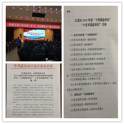 2月13日上午,江夏区召开区委五届八次全体(扩大)会议暨全区三级干部大会,会议通报了关于2018年度全区机关中层处室和基层站所评议“十优满意单位”“十差不满意单位”,武汉住房公积金管理中心江夏分中心获评“十优满意单位”。