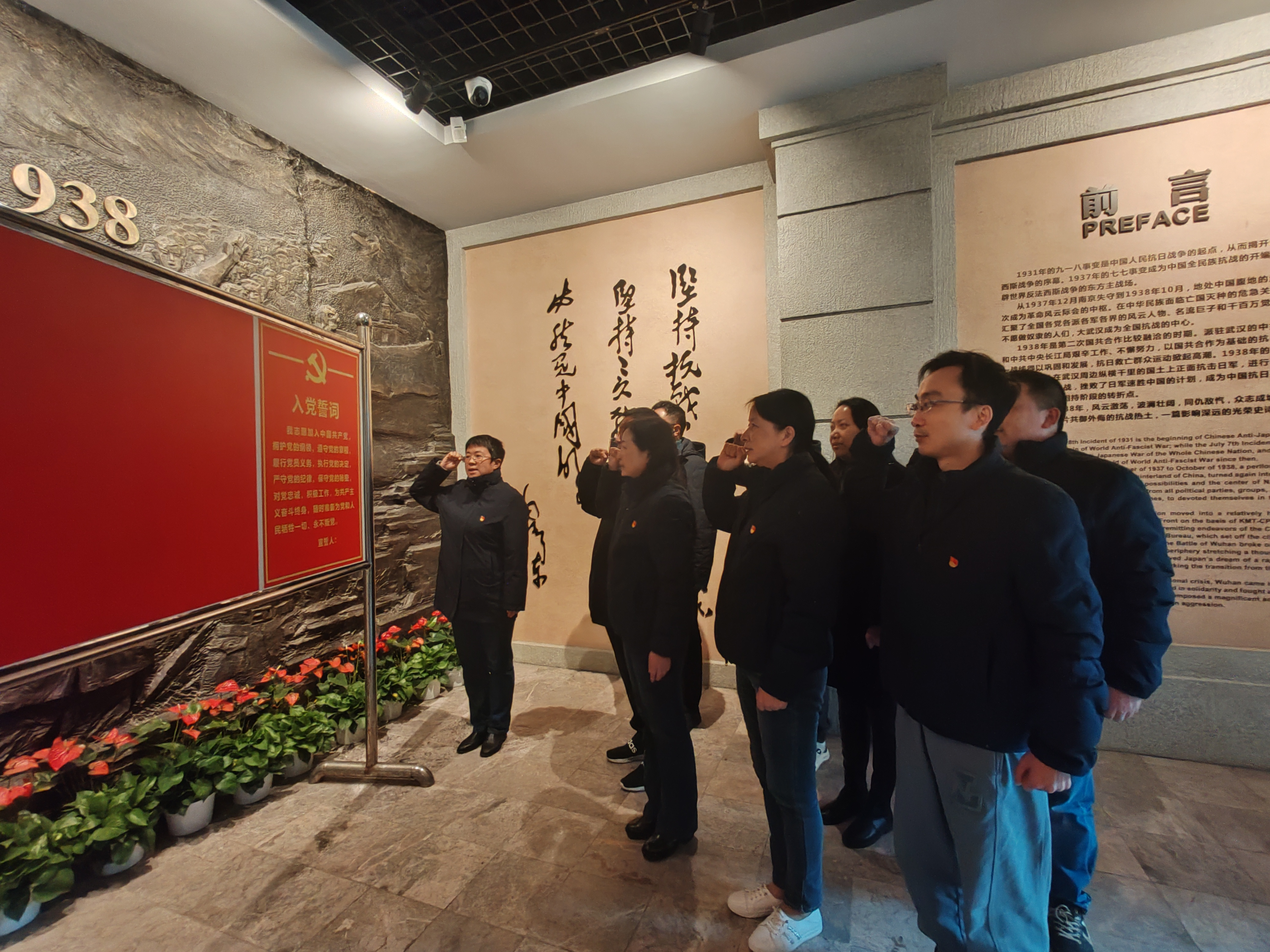 随后,支部党员集体在纪念馆内重温入党誓词,坚定为民服务理念,不忘初心使命。通过这次“红色革命再教育”活动,汉口分中心党员干部一起回顾历史,珍爱和平,缅怀革命先烈,学习革命精神,树立正气清风。