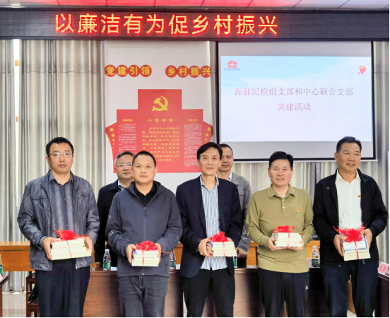 随后,3个党支部共同召开主题党日学习交流活动。党员干部集中学习了“落实在一线”系列评论文章,中心驻郭家岗村工作队汇报了驻村帮扶工作情况,郭家岗村村委会介绍了本村概况及乡村振兴工作规划,凤凰镇纪委通报了郭家岗村帮扶经费管理和使用情况。派驻纪检组和中心党组还为驻村队员们送上了学习书籍《共产党人的必修课》《置身事内—中国政府与经济发展》等“精神大餐”。