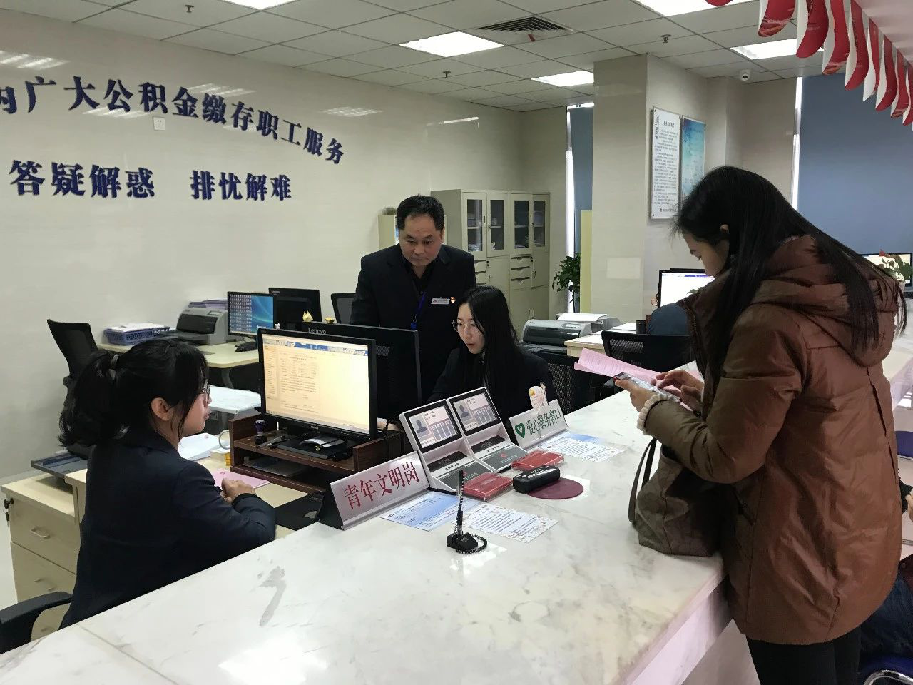 为了能够方便更多职工办理公积金的需求,从2014年起,省直分中心综合业务部就在全市率先推出了午间不休息的“青年文明岗”服务。自此,每天中午的12:00-14:30期间都有员工轮流值岗,为前来咨询和办理公积金业务的人提供服务。去年5月,省直分中心再次推出创新举措——周六延时服务,时间为9:00-16:00,该服务的推出得到周边各缴存单位和职工的大力点赞。