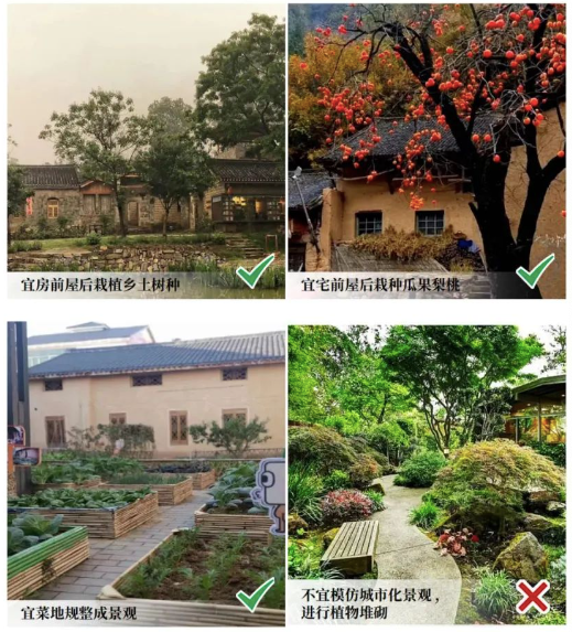 《指引》指出,要重点绘好三张图,即总体平面图、基础设施公共服务布局图、产业发展图,深入挖掘乡村的生态价值、经济价值、文化价值、美学价值。建设时,要保护林地、保护自然河道、提倡“自然做功”,村庄环境要扫干净、码整齐、收通豁、种美观,新建房屋要选址安全、空间立体、平面协调、风貌整体、文脉延续,优先利用闲置房,再到集镇旁,集中建成宜居房。