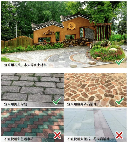 不宜选材昂贵(大理石、花岗岩等),风貌失调