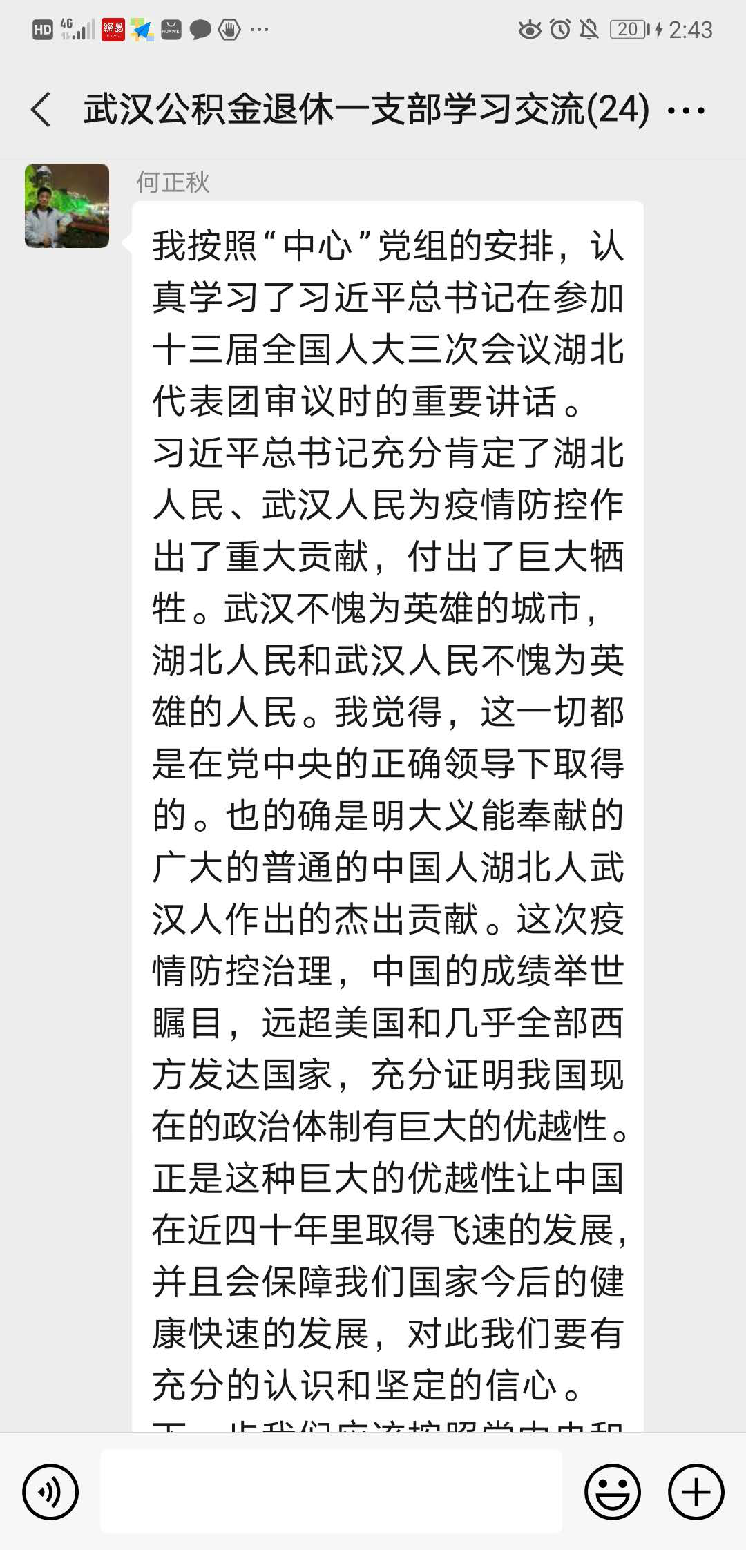 武汉住房公积金管理中心老干党支部开展“云上”支部主题党日活动