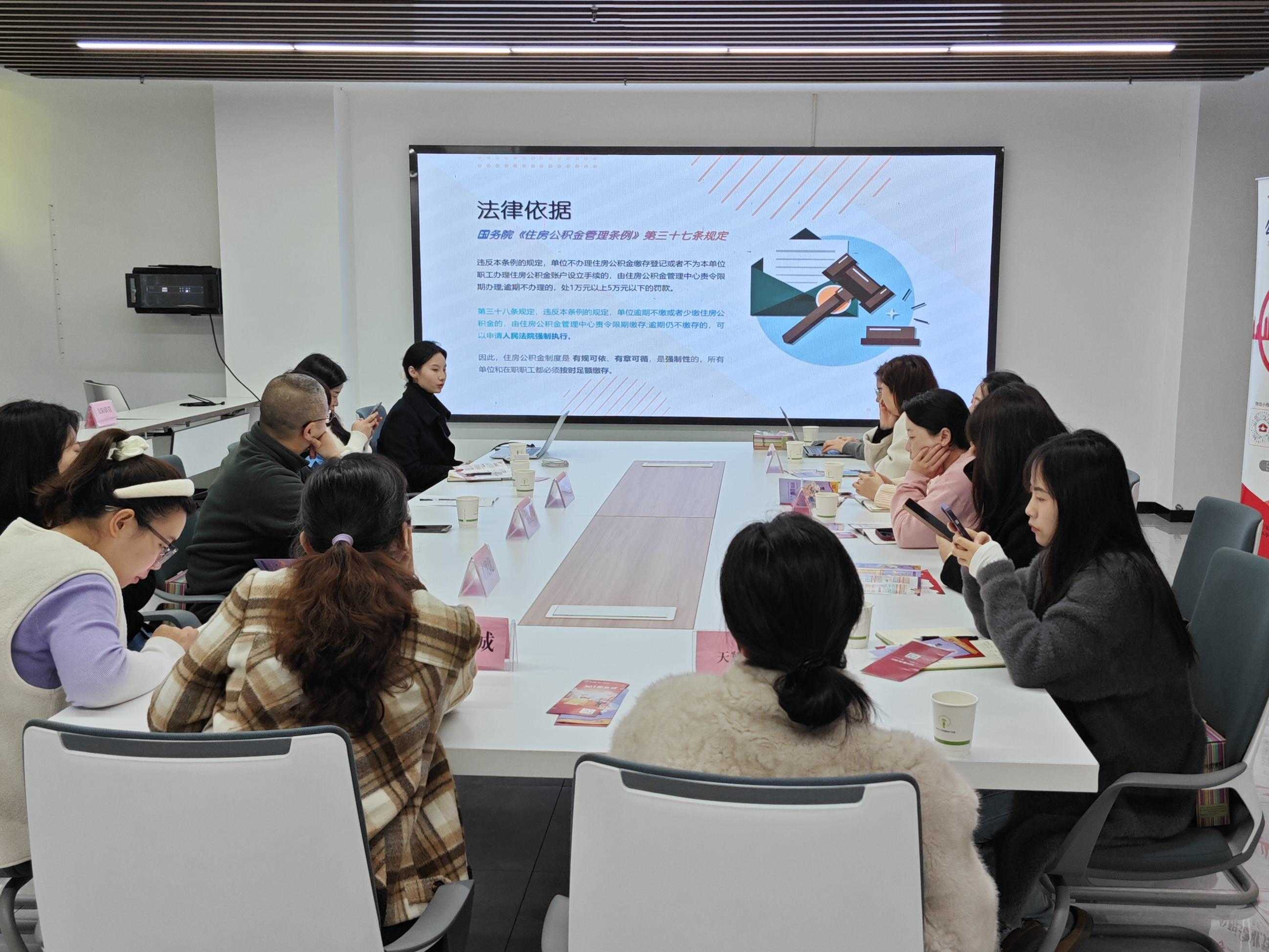 业务骨干贺喆从企业与职工两个维度,系统解读了缴存公积金在税收优惠、吸引人才、圆梦安居等方面的多重利好,详细介绍了公积金缴存登记、基数核定、缴存比例及提取、贷款等政策要点。同时,着重介绍了武汉公积金服务热线、APP、公众号、小程序等官方渠道,提醒缴存单位和职工通过正规渠道办理公积金业务,勿轻信“公积金提取”广告和非法中介,守护资金安全。