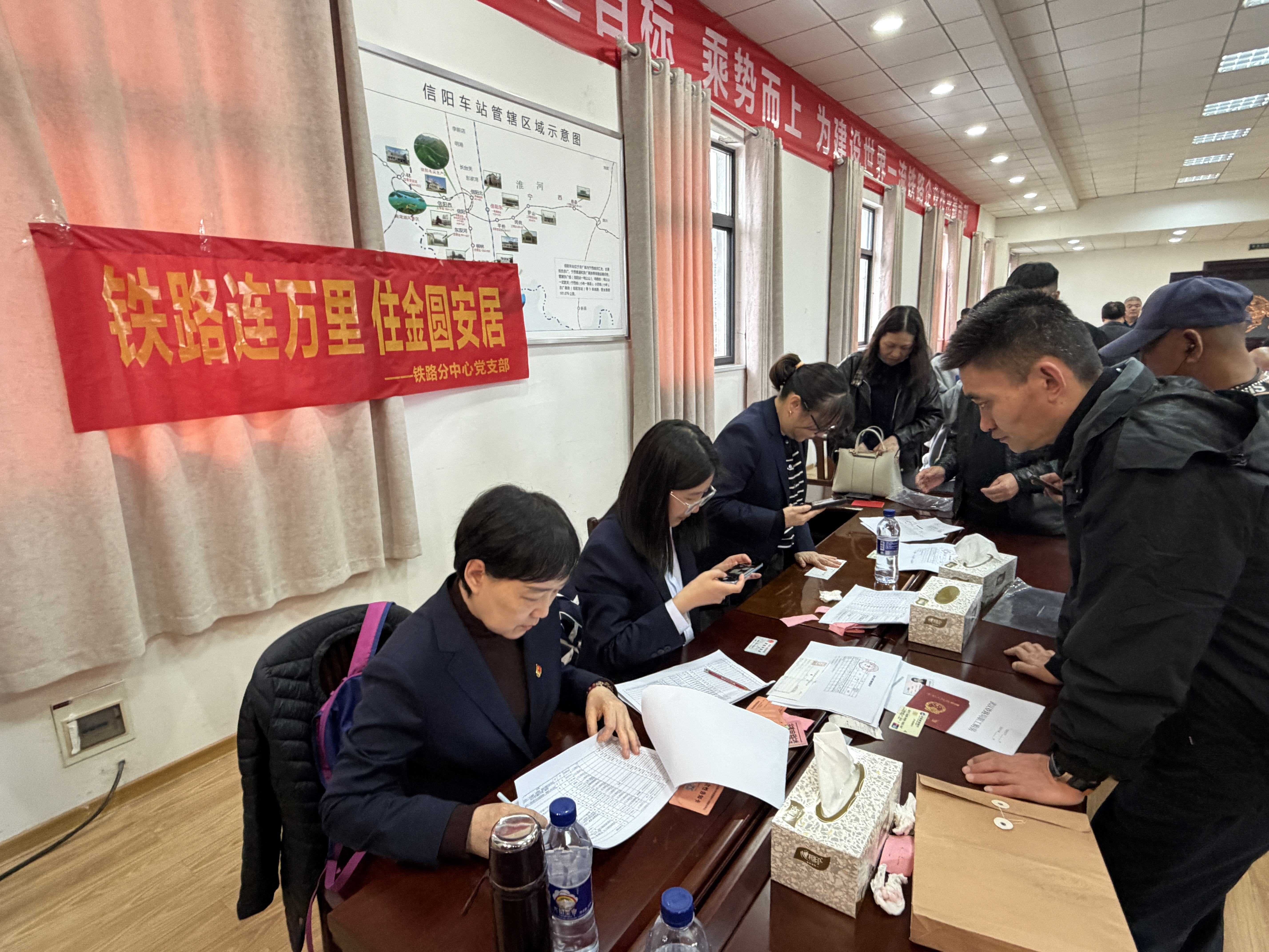 3月30日下午,铁路分中心党员服务小分队抵达信阳车站,与武汉铁路局住宅指挥部协同联动、高效配合,现场规范设置政策咨询、首付款缴纳、公积金提取、尾款结算收房四个专项窗口,流程清晰、秩序井然。工作人员提前到岗就位,备齐资料、细化指引,职工按序等候、叫号办理、全程顺畅,实现“一次引导、一窗受理、一站办结”,展现出严谨规范、贴心高效的服务风貌。
