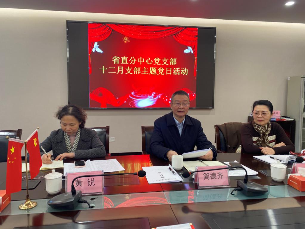 近日,武汉住房公积金管理中心省直分中心党支部邀请中心二级巡视员简德齐、一级调研员柯晓阳和机关党委专职副书记黄锐参加本年度最后一次支部主题党日活动,简德齐巡视员在活动中为全体党员带来一堂生动的专题党课,向全体党员做了党的十九届六中全会精神宣讲。