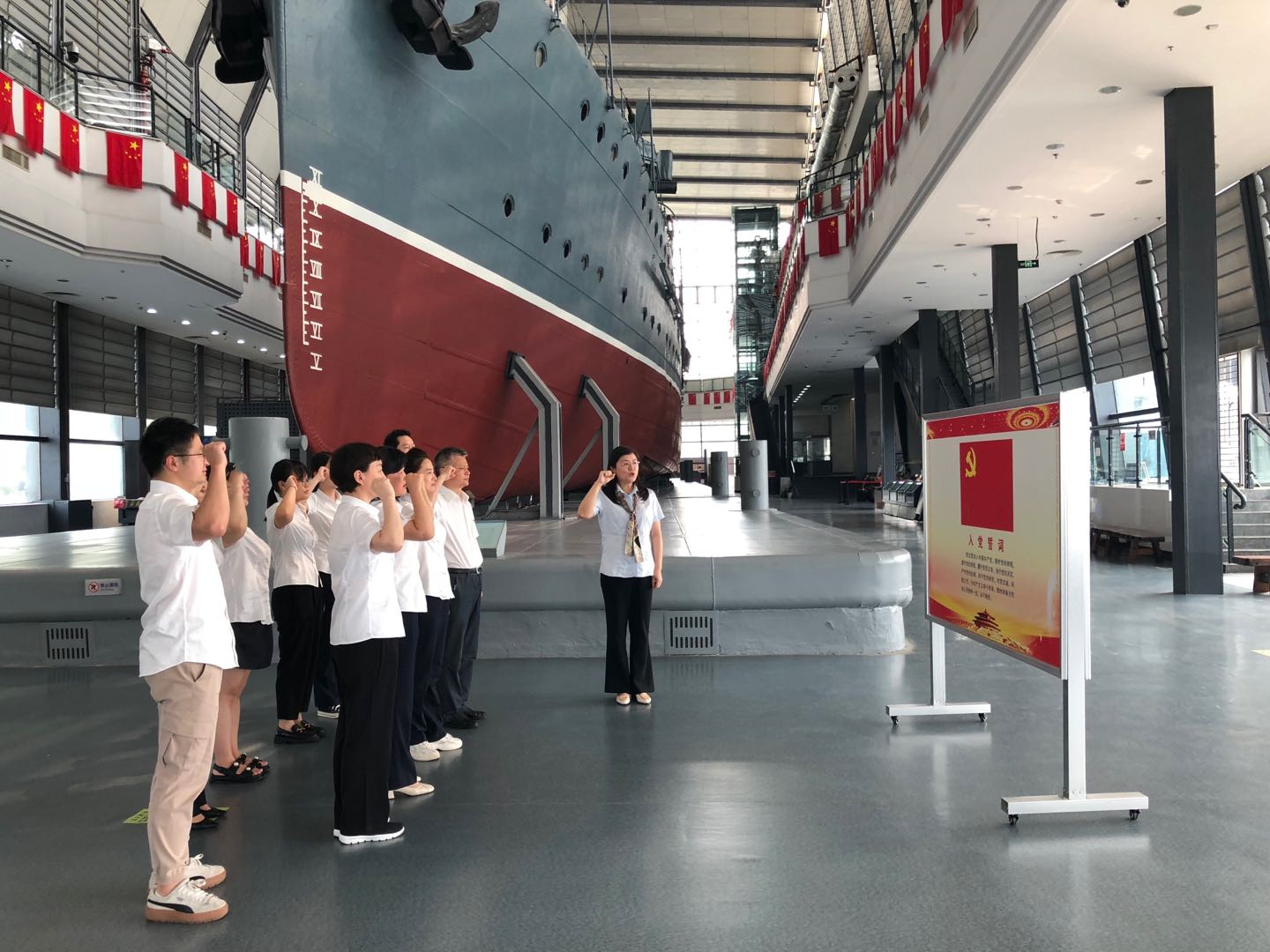 党员们来到了博物馆舰体陈列厅,在讲解员的带领下了解了中山舰背后的历史故事,还参观了珍贵的文物以及相关的图片、影像资料。在现场,大家仔细聆听解说,感受中山舰体现出的民主、爱国精神,整个过程大家都沉浸在中国人民不屈不挠、英勇抗战的民族精神氛围中,体会到了如今的幸福生活是多么的来之不易,深刻认识到要珍惜眼前得来不易的和平时期,继续坚定不移地跟党走,立足岗位做贡献,为实现中华民族伟大复兴贡献自己的力量。参观结束后,在市民之家支部书记张颖同志的带领下,全体党员面向党旗重温了入党誓词。