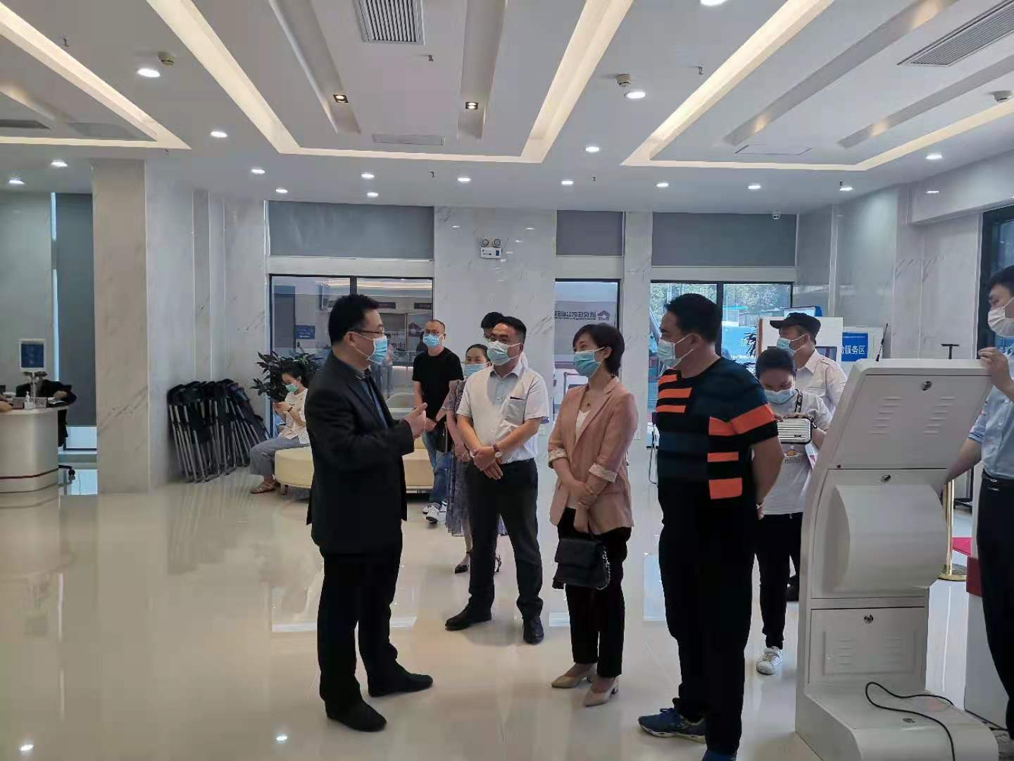 考察交流中,黔南州公积金中心一行参观了省直分中心业务大厅,观摩了无接触办的整个办理流程,考察了缴存银行网点——建行卓刀泉支行的公积金柜台。期间,分中心负责人对日常柜面业务情况和服务做法做了简要的介绍,特别是对黔南州公积金中心非常感兴趣的无接触办业务做了重点讲解,并对黔南州一行提出的公积金相关问题知无不言、言无不尽一一作了解答。