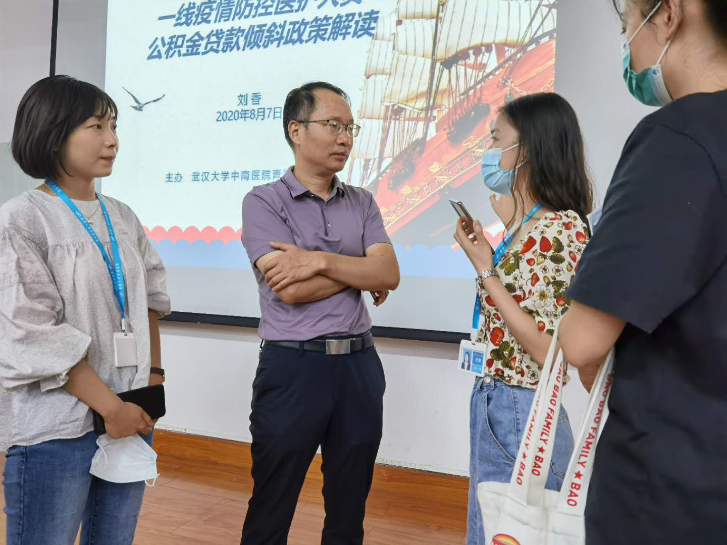 应武大中南医院青知联、团委邀请,武汉公积金中心贷款处与省直分中心工作人员一起,走进武大中南医院,与一线青年医护人员面对面开展宣讲交流活动。