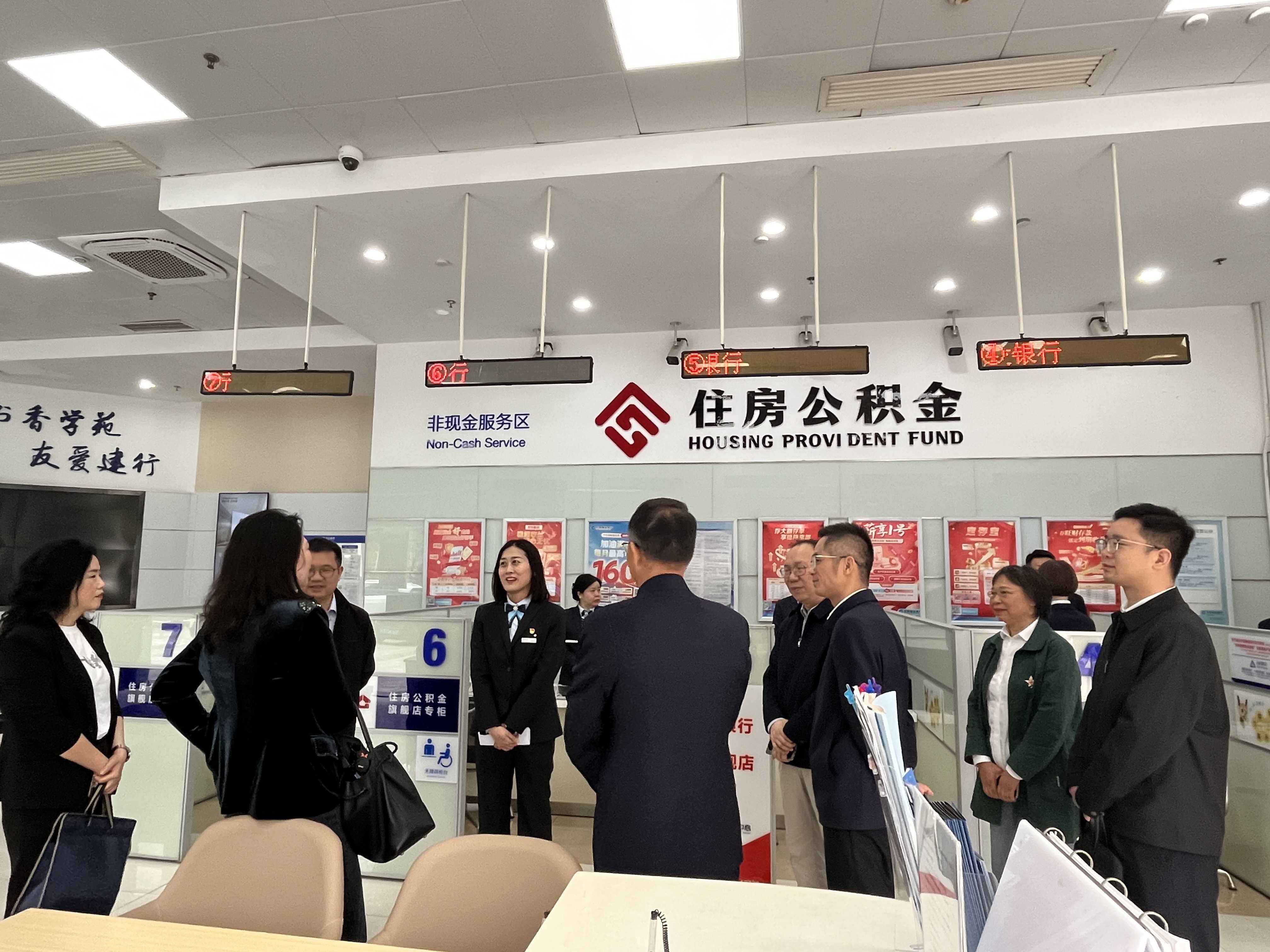 倪副司长一行首先前往武昌分中心公积金银行旗舰店建行学苑支行进行实地考察,详细查看旗舰店公积金业务窗口硬件设置、便民服务举措落实以及信访诉求前端化解相关工作开展情况。随后,调研组一行来到武昌分中心营业大厅,察看大厅信访投诉接待专区、信访维权业务开展情况,认真听取了工作人员关于日常信访案件受理、群众服务保障等方面的工作介绍,直观感受基层一线在处理群众信访维权中的高效流程与工作氛围,调研组对分中心优化服务环境、畅通诉求渠道的做法给予关注和肯定。
