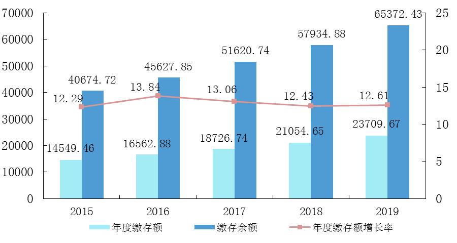 2019年,住房公积金缴存额23709.67亿元,比上年增长12.61%。