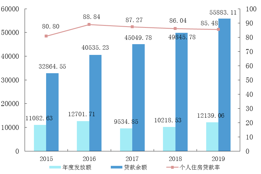 (一)个人住房贷款。截至2019年末,住房公积金个人住房贷款逾期额19.51亿元,逾期率[10]0.03%;住房公积金个人住房贷款风险准备金余额2201.62亿元,与个人住房贷款余额的比率为3.94%。