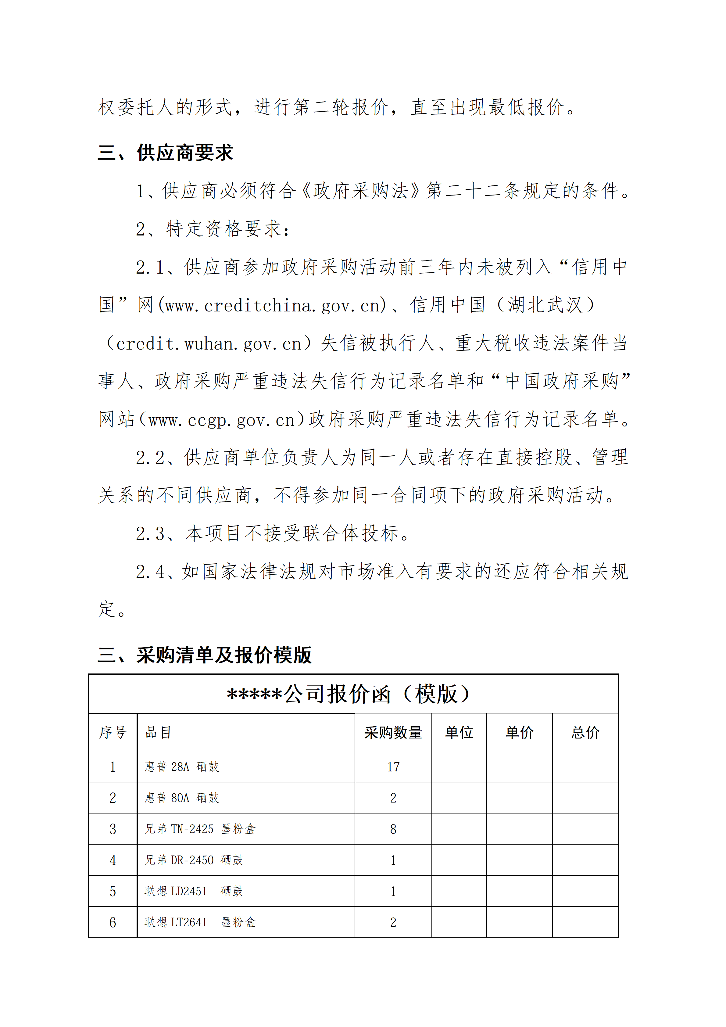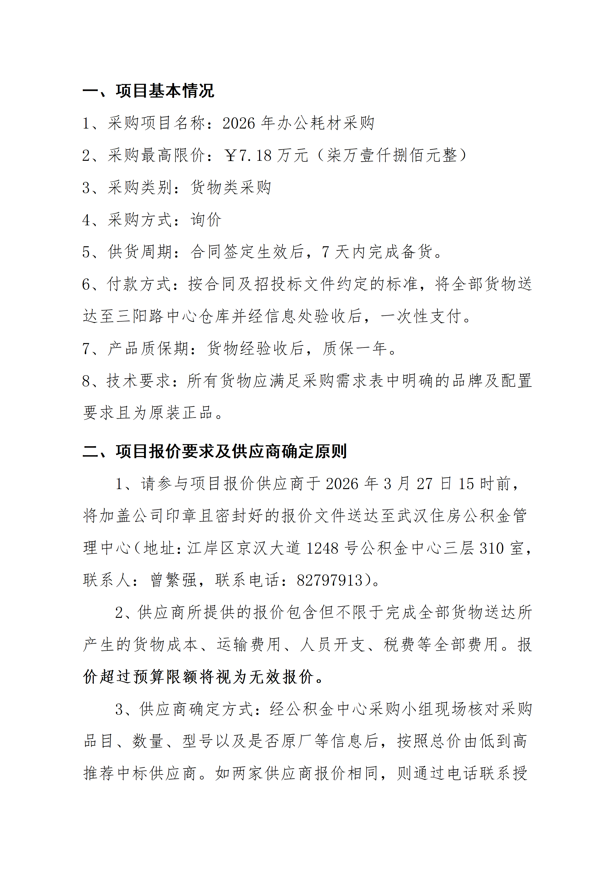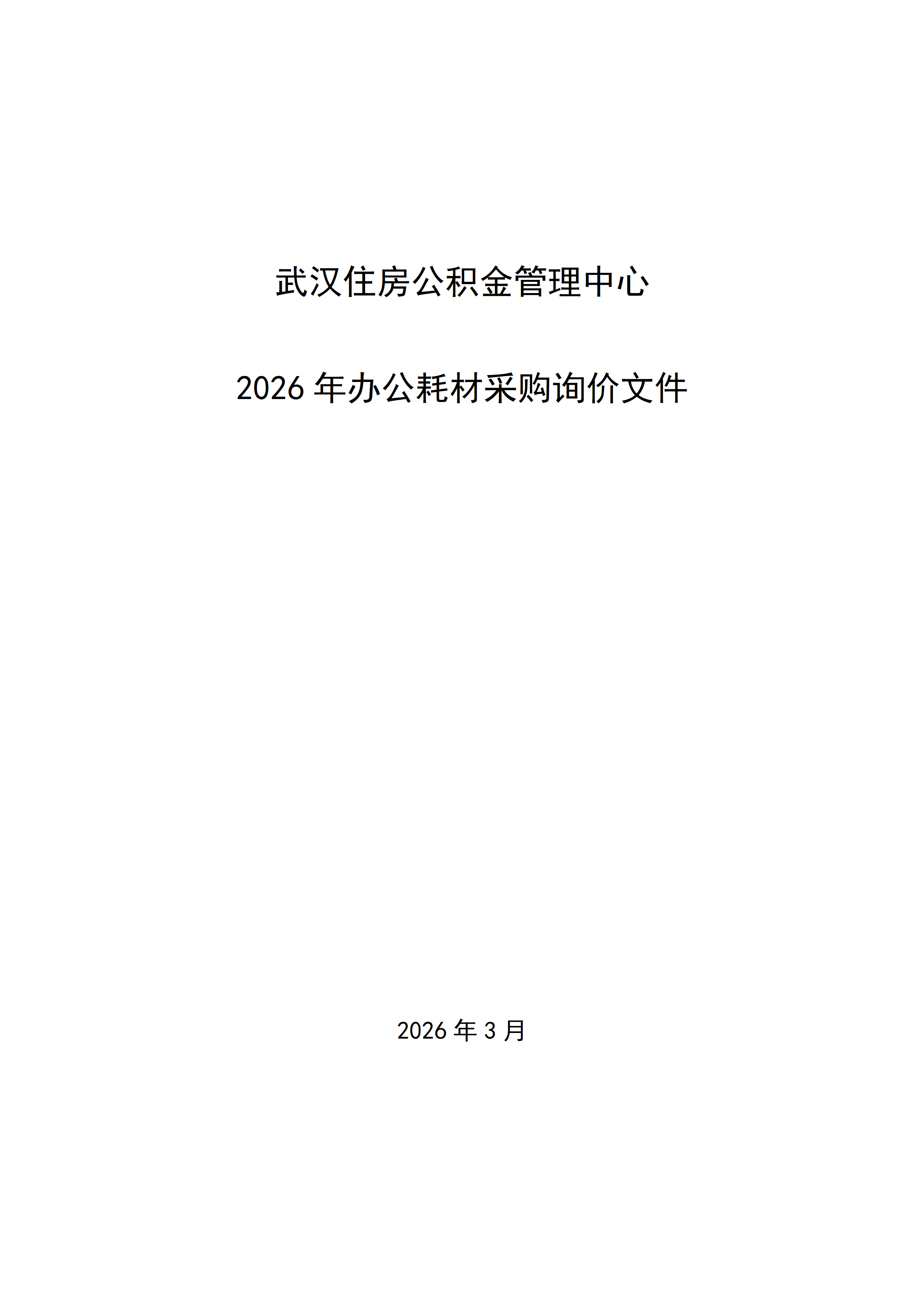武汉住房公积金管理中心2026年度办公耗材采购询价公告