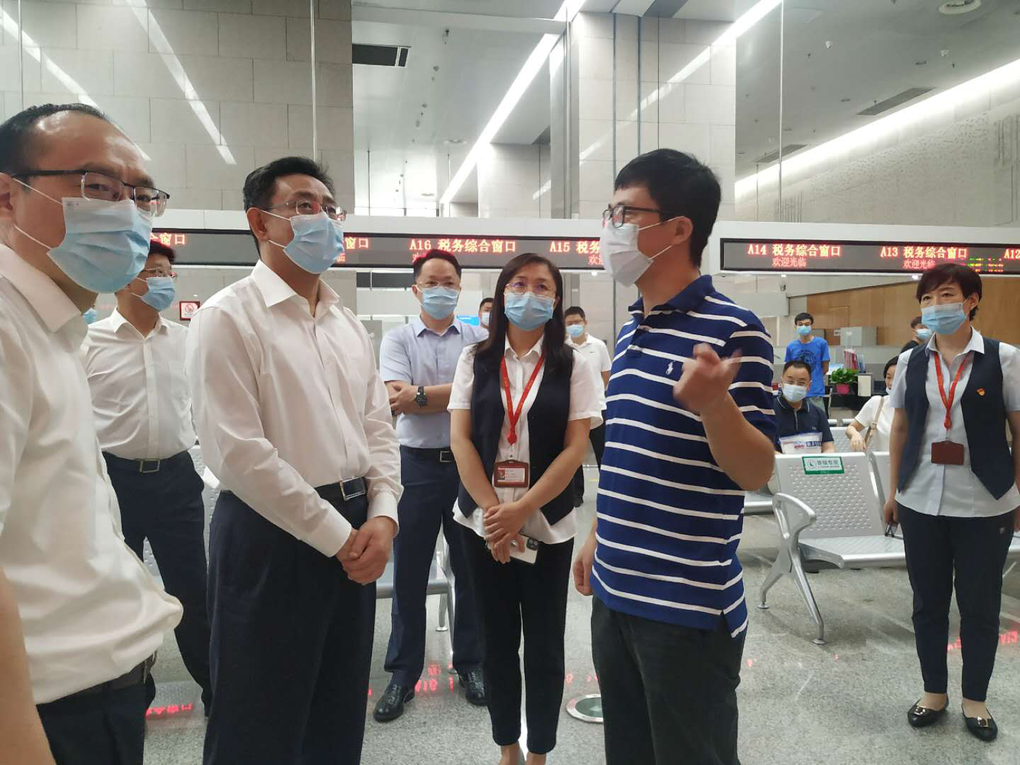 2020年8月8日上午,市委常委、常务副市长胡亚波来到武汉市民之家,检查公积金政务服务窗口周末延时服务开展工作。市政府副秘书长程介儒、武汉公积金中心主任张灼陪同检查。