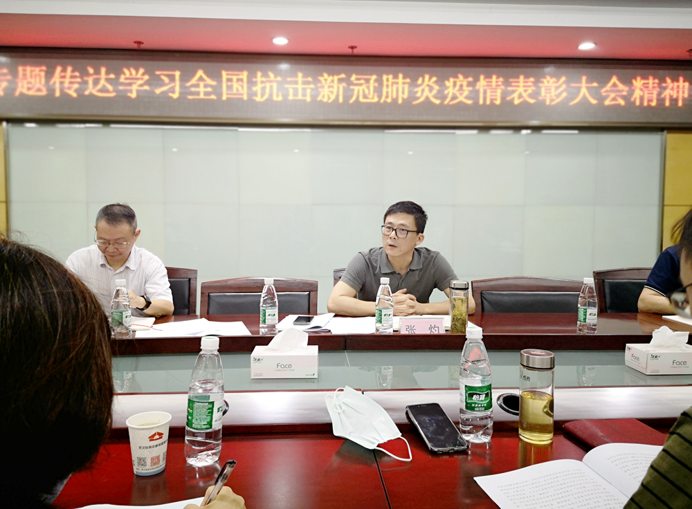 张灼主任向中心系统党支部书记和部门、分中心负责人传达了全国抗击新冠肺炎疫情表彰大会精神,并传达了市委传达学习全国抗击新冠肺炎疫情表彰大会精神会议上,“人民英雄”国家荣誉称号获得者张定作的报告内容和王忠林书记的讲话要求。