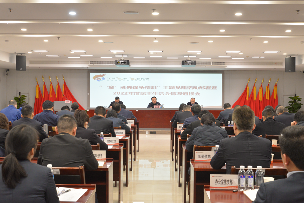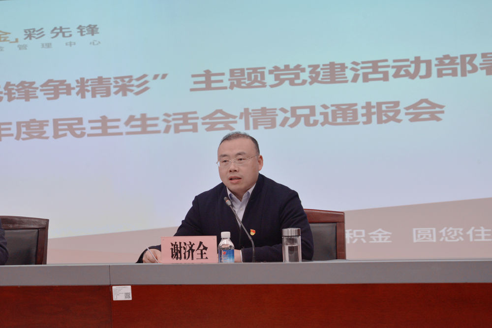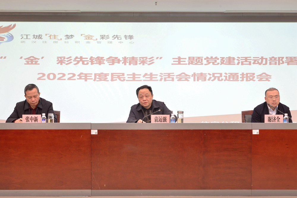 3月20日,武汉住房公积金管理中心召开2023年“‘金’彩先锋争精彩”主题党建活动部署暨2022年度民主生活会情况通报会。党组成员、副主任谢济全主持会议,党组书记、主任袁运强同志讲话。党组成员,一级调研员,机关党委委员,党支部书记,副处级以上干部职工参加会议。