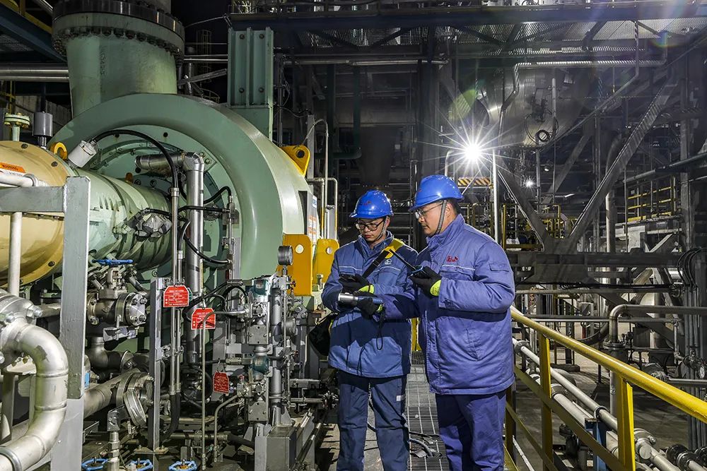 2月18日,中韩石化聚烯烃二部工作人员正在对装置关键设备进行定时检测,确保装置安、稳、长、满、优运行。中韩石化是华中地区最大的炼油化工生产基地,1月销售汽油18万吨,同比和环比都增加了2.7万吨,创历史新高。(湖北日报全媒记者 柯皓 通讯员 付松 丁理 摄)