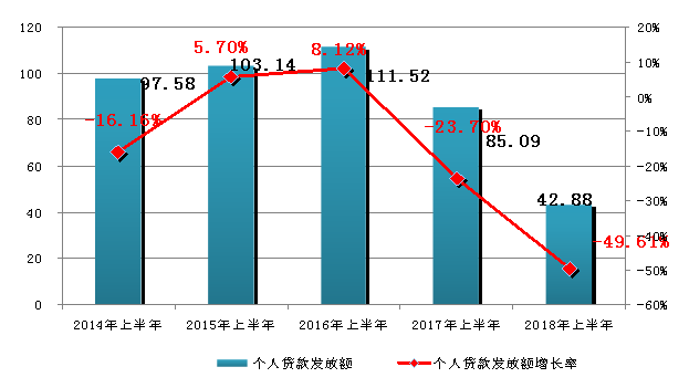 近五年同期个人贷款发放趋势图(单位:亿元)