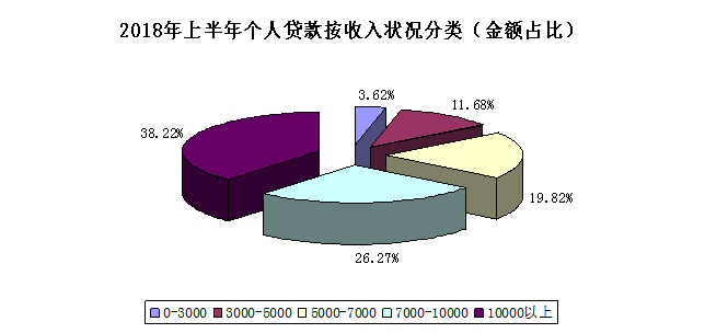 (1)从借款人家庭月收入情况来看,月收入7,000元以下的中低收入家庭贷款户数达4,054户,贷款金额26.49亿元,贷款户数和金额占上半年贷款总量的比重均接近五成。