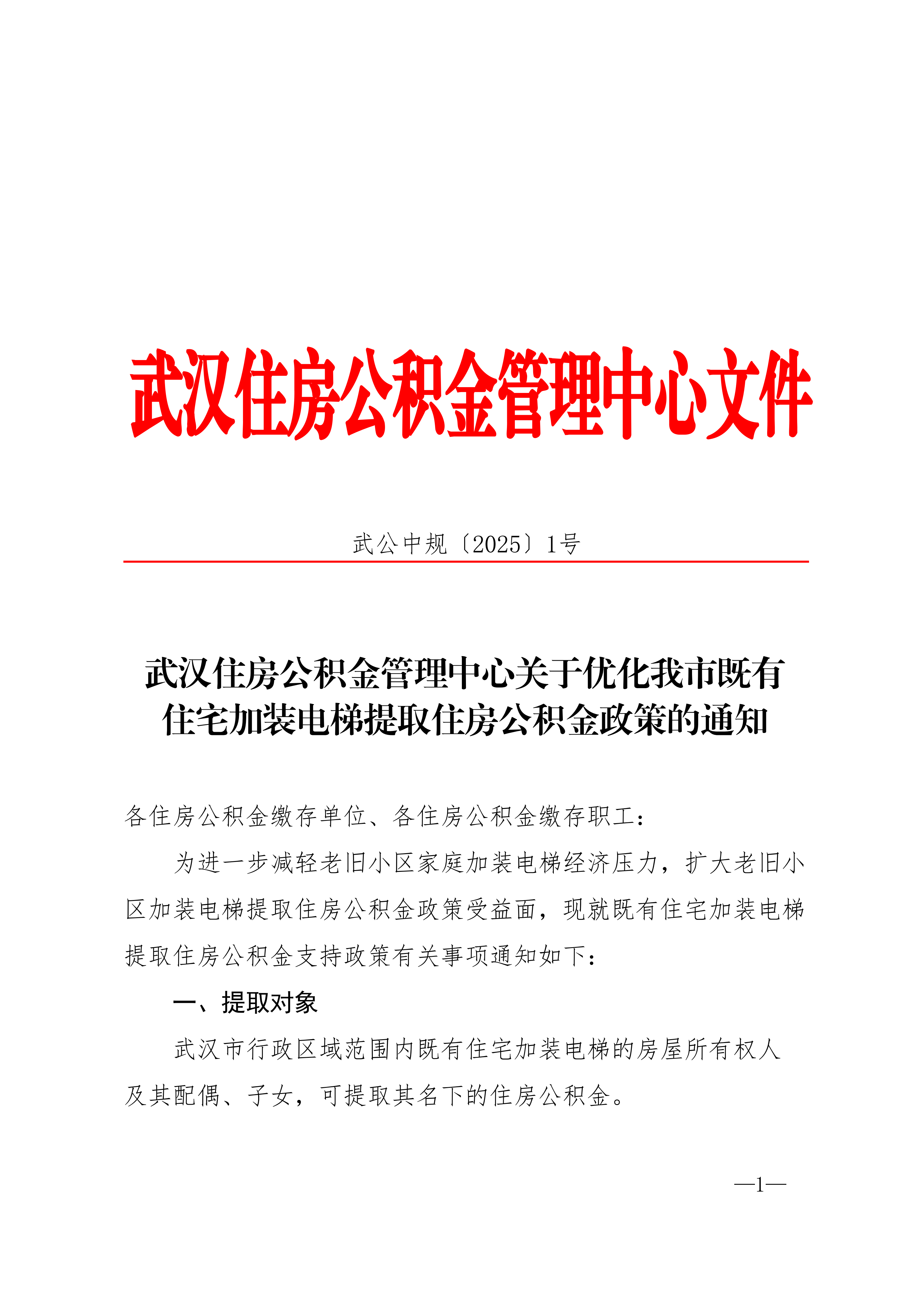 【提取】武公中规〔2025〕1号武汉住房公积金管理中心关于优化我市既有住宅加装电梯提取住房公积金政策的通知