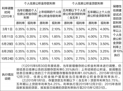 2015年,公积金中心按照人民银行、住建部公积金利率调整规定,对公积金存贷款利率进行了5次调整,具体调整及执行情况如下: