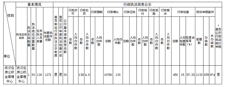 武汉住房公积金管理中心2022年度行政执法统计年报表