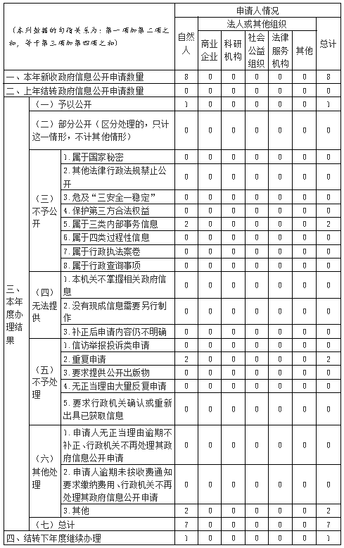 申请渠道畅通,严格按照网站依申请公开系统、政务邮箱、当面和信函等线上线下渠道规范接收政府信息公开申请。本年度共收到政府信息公开申请8件,7件在法定时限内作出了答复且未收取任何费用,1件结转下年度继续办理,有效保障了公众依法行使知情权、参与权、表达权、监督权。